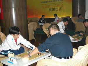 上午8:00,比赛开始。比赛采取积分编排办法,共进行7轮比赛,各队以成绩最好的3名选手个人名次累计团体名次。赛场上,只见选手们在布局、中局、收官的进程中子力配合标准,打吃、尖、跳、飞、靠、断以及打劫、滚打、倒脱靴等运用得灵活多变,使棋形生动、可观性强。集团公司总经理助理杨勇率集团本部队参加了比赛。
