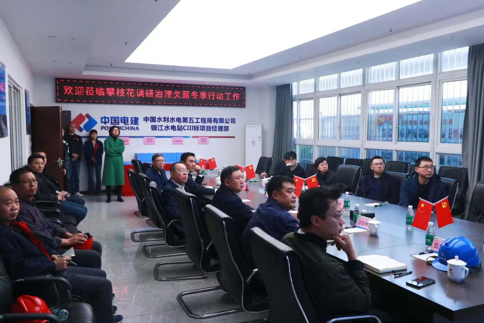 12月12日,人力资源社会保障部劳动保障监察局一级巡视员陈岚带队到ok138cn太阳集团古天乐能源所属攀水电公司银江水电站调研,开展治理欠薪冬季行动相关工作,攀枝花市政府、东区政府及相关单位人员陪同调研,攀水电公司党总支委员、纪检小组长杨锐及相关部门、参建单位代表参加调研。