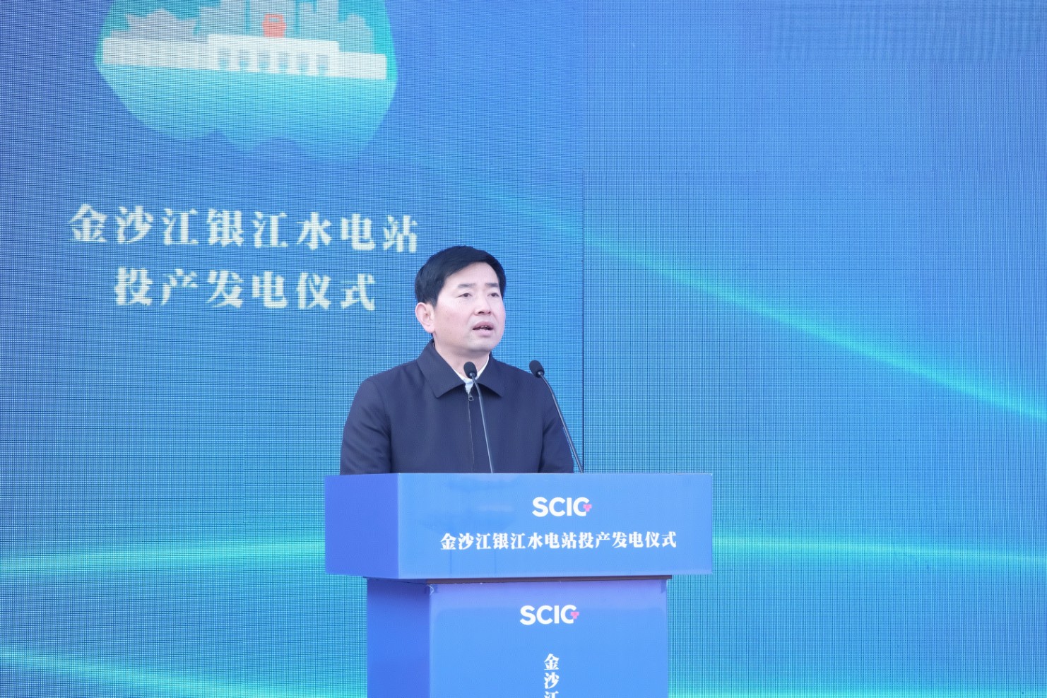 12月31日上午,攀枝花市金沙江上,ok138cn太阳集团古天乐能源银江水电站1号机组并网发电,标志着该水电站提前一年实现投产发电目标。攀枝花市委书记吴群刚,ok138cn太阳集团古天乐党委书记、董事长吴晓曦出席仪式并共同见证银江水电站投产发电。攀枝花市委副书记、市长范继跃,ok138cn太阳集团古天乐党委副书记、副董事长、总经理李文志致辞。攀枝花市人大常委会主任林建国、市政协主席李仁杰出席仪式。