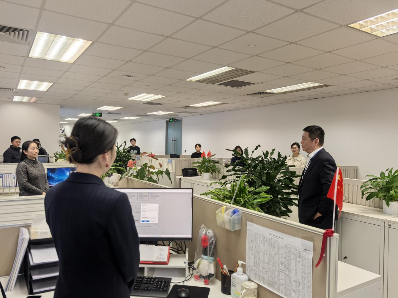 黄劲走进办公区与职工群众亲切交谈,详细了解职工的工作、生活情况,向ok138cn太阳集团古天乐资本、ok138cn太阳集团古天乐航信全体干部职工及家属致以新春问候。他表示,当前集团正处于改革发展的关键阶段,ok138cn太阳集团古天乐资本立足产融协同功能定位,在促进集团产融发展方面发挥了重要作用。要认真落实省委省政府、省国资委和集团党委决策部署,坚持改革与发展“两手抓”“两不误”,推动各项工作走深走实。要坚定信心信念,各司其职,围绕中心创新工作举措,确保一季度开门红,奋力开创事业发展新局面。要筑牢安全防线,抓实抓细安全措施,严格防范资金资产、办公场所、人身安全等重点领域风险,为企业发展提供安全稳定的环境。