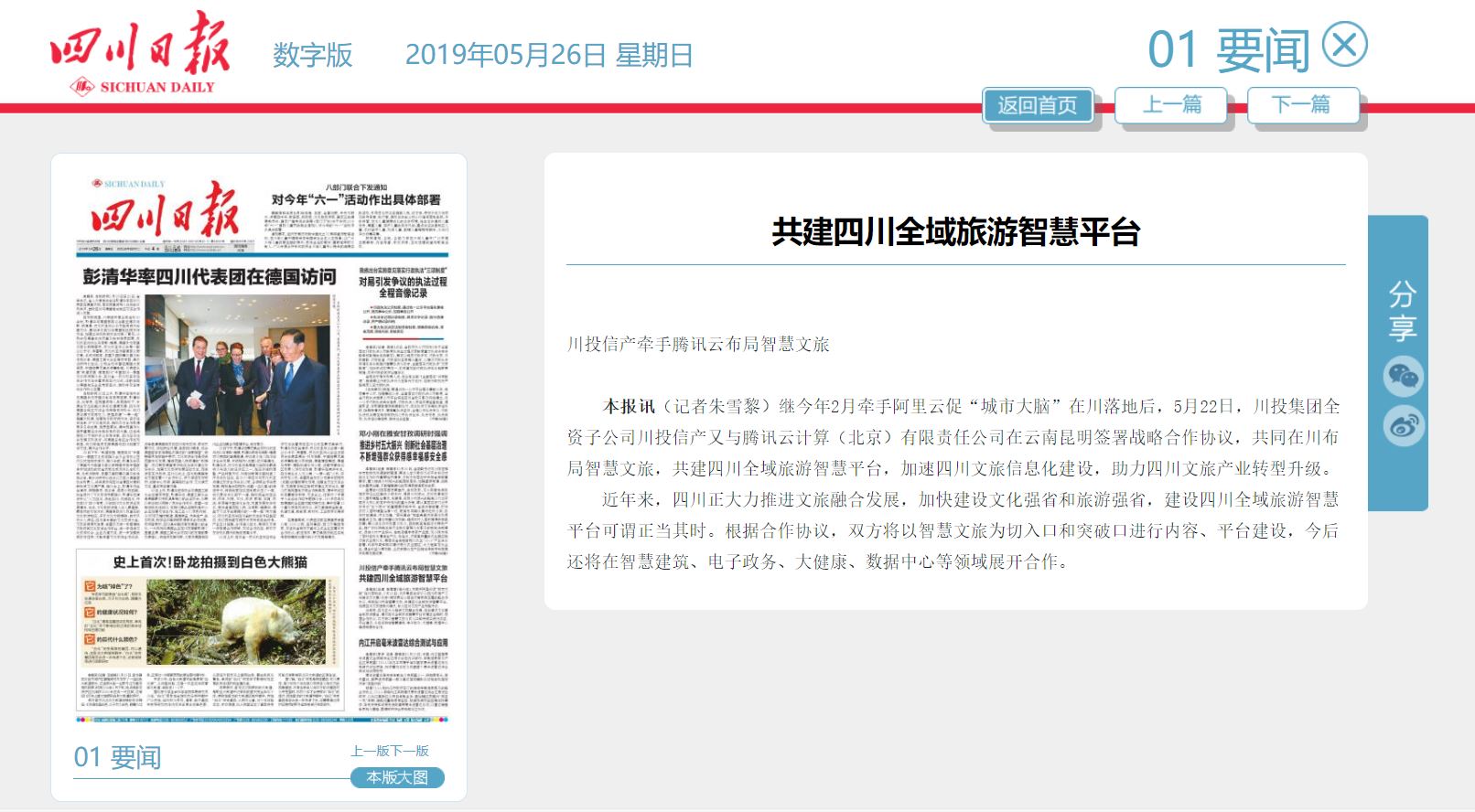 近年来,四川正大力推进文旅融合发展,加快建设文化强省和旅游强省,建设四川全域旅游智慧平台可谓正当其时。根据合作协议,双方将以智慧文旅为切入口和突破口进行内容、平台建设,今后还将在智慧建筑、电子政务、大健康、数据中心等领域展开合作。