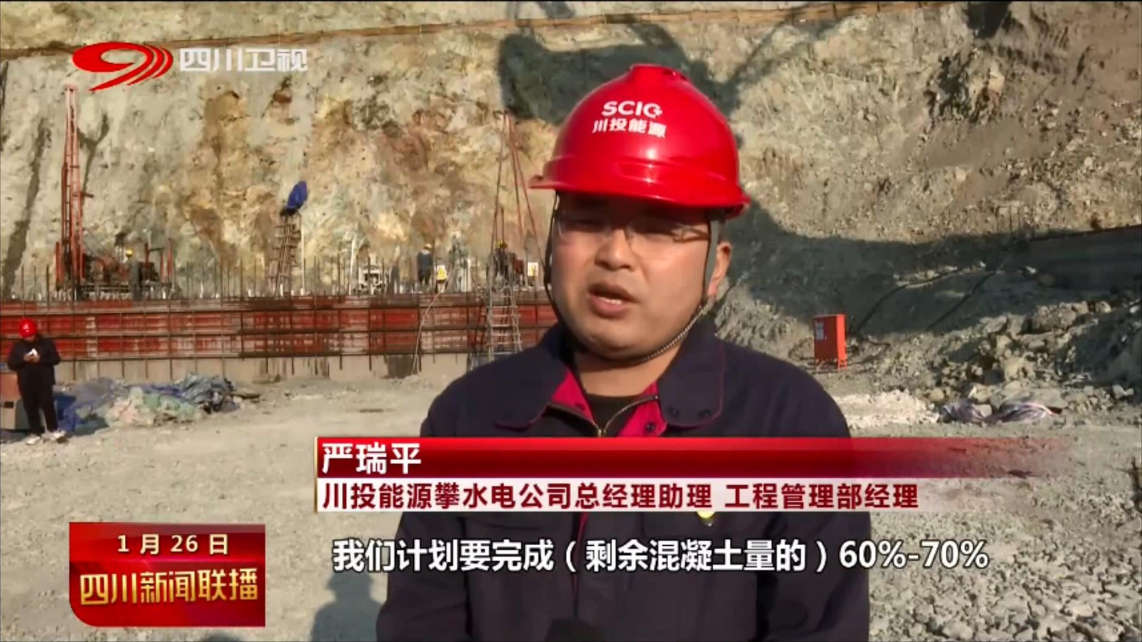 ok138cn太阳集团古天乐能源攀水电公司总经理助理 工程管理部经理 严瑞平: 2023年工作计划主要就是混凝土浇筑,我们计划要完成剩余混凝土量的60%-70%然后就是机电埋件安装,也会跟着我们土建施工进度一并来进行。