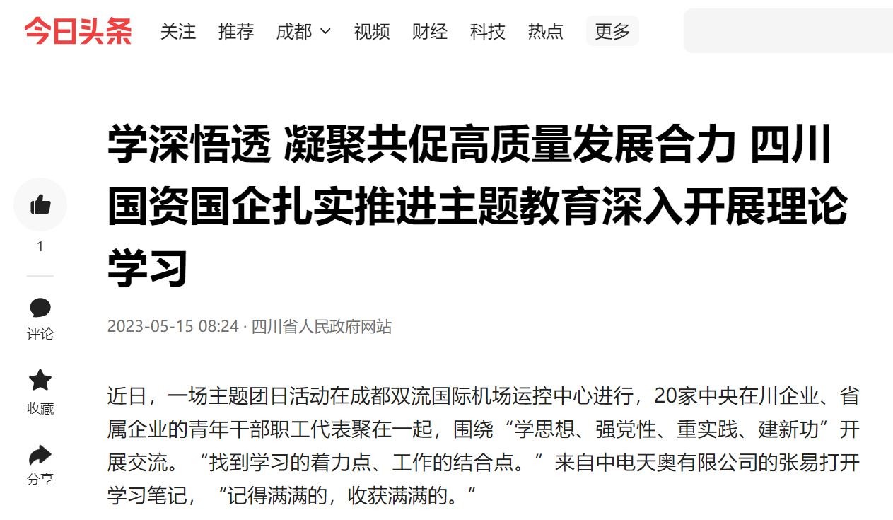 近日,一场主题团日活动在成都双流国际机场运控中心进行,20家中央在川企业、省属企业的青年干部职工代表聚在一起,围绕“学思想、强党性、重实践、建新功”开展交流。“找到学习的着力点、工作的结合点。”来自中电天奥有限公司的张易打开学习笔记,“记得满满的,收获满满的。”