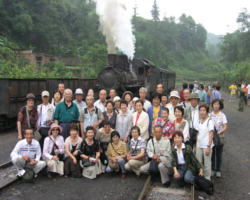 7月4日上午10点30分,载着日本游客的两辆大巴车缓缓驶进了跃进站,日本游客一下汽车便抑制不住内心的激动,纷纷来到文物保护纪念碑前、火车头前留念。火车起动了,游客们看着窗外满眼翠绿的景色,激动地举起相机为同伴照相。兴奋、好奇的日本游客一路上忙个不停,小火车到达蜜蜂岩站,游客们站到铁道线旁十分好奇地观看小火车在Y型轨道上调头,待车停好后,便迫不急待地在火车前照相合影;有位游客还用中国话和司机攀谈,一边说她还一边高兴地手舞足蹈起来。市川市副议长大川正博先生说:刚才乘坐了小火车后,油然而生一种怀旧感,以前日本也有过蒸汽火车,现在虽已电气化,但我们对蒸汽火车仍然十分怀念。大川正博先生还对嘉阳小火车沿途旖旎的风光、风土人情赞不绝口。此次市川市到嘉阳乘坐小火车的旅游团是近年来人数最多的外国旅游团队。