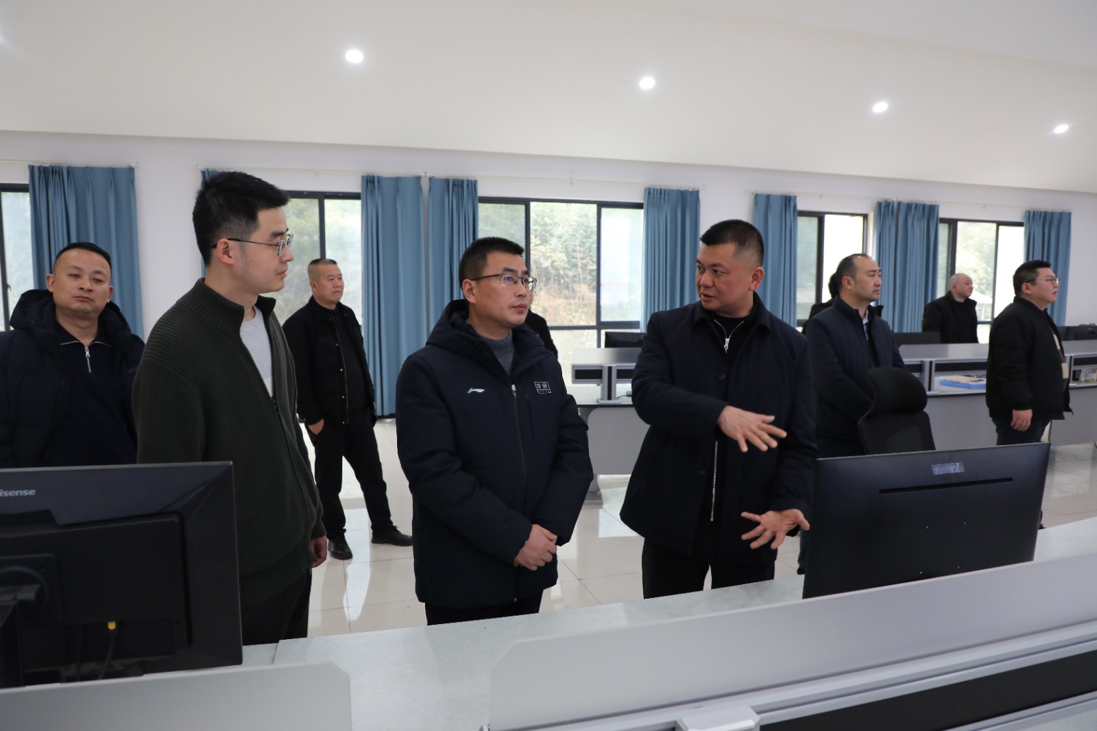 在嘉阳煤矿调度中心,张德平一行听取嘉阳煤矿相关负责人的汇报,详细了解入井人数、人员定位系统以及电煤供应、安全生产措施落实和节日值班值守等情况。