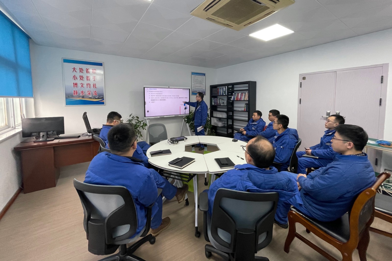 交流中,先后开展了焊接与热切割作业培训及实操考核,热工与汽机检修专业联合开展了“#2机2号循环水泵出口液控蝶阀关到位信号丢失”缺陷分析,电气检修专业针对“磨煤机减速机电机轴承温度异常”展开分析研判并成功处置险情,锅炉检修专业组织开展了动平衡仪的使用教学,各班组还就班组安全管控等日常工作中遇到的困难和问题进行了探讨。
