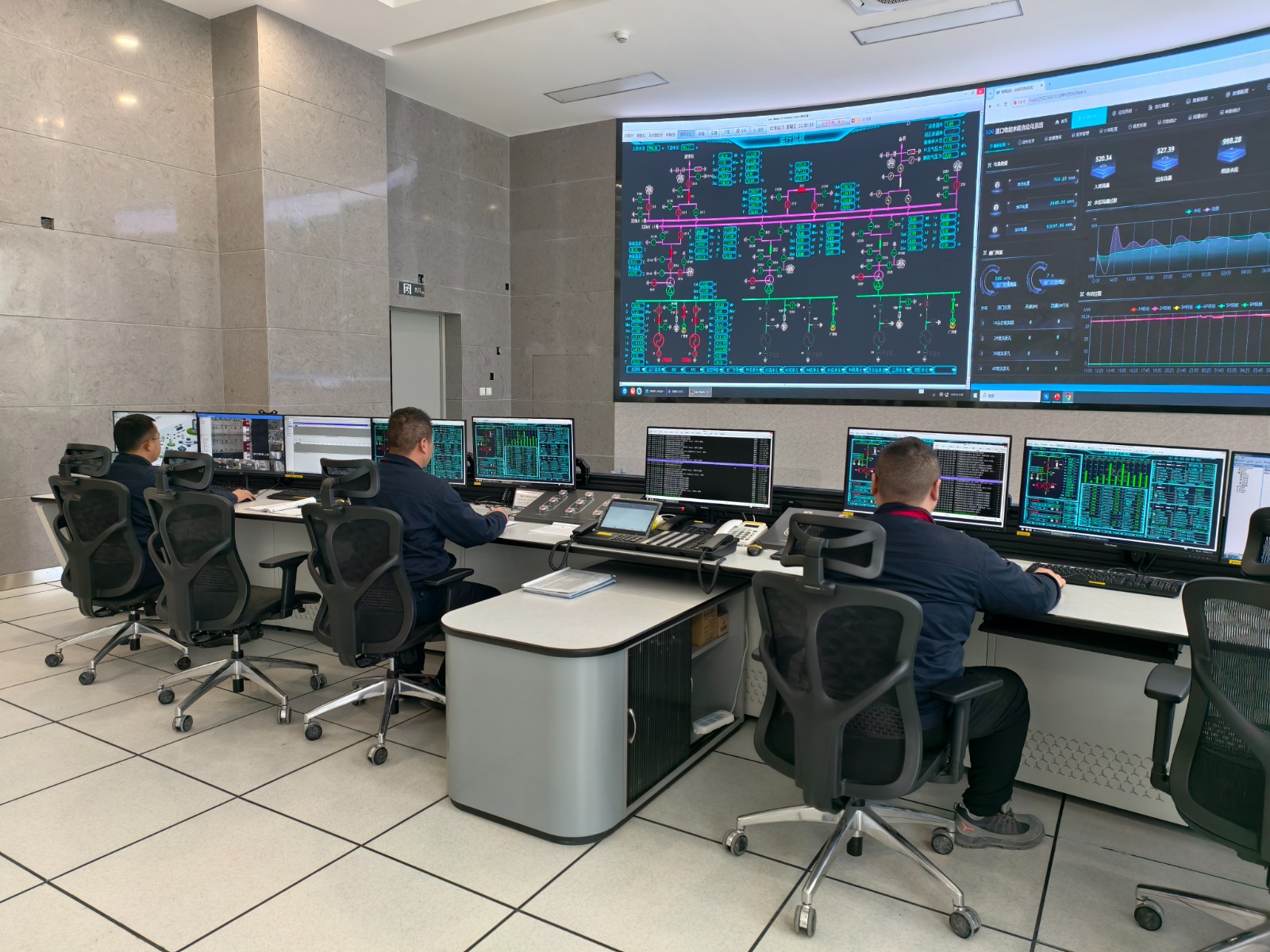 春节期间,运行、维护人员及工程建设值守人员的工作丝毫没有松懈。他们24小时轮班值守,密切监控着水情监报系统,确保及时掌握水位、流量等数据的变化,为水电站安全稳定运行提供精准的数据支持。在运行设备区域,他们定时巡检,仔细检查设备的运行状态,哪怕是极其细微的异常声响、温度变化都逃不过他们的“火眼金睛”。中控室内,值班人员全神贯注地盯着屏幕,实时掌握电站整体运行情况。