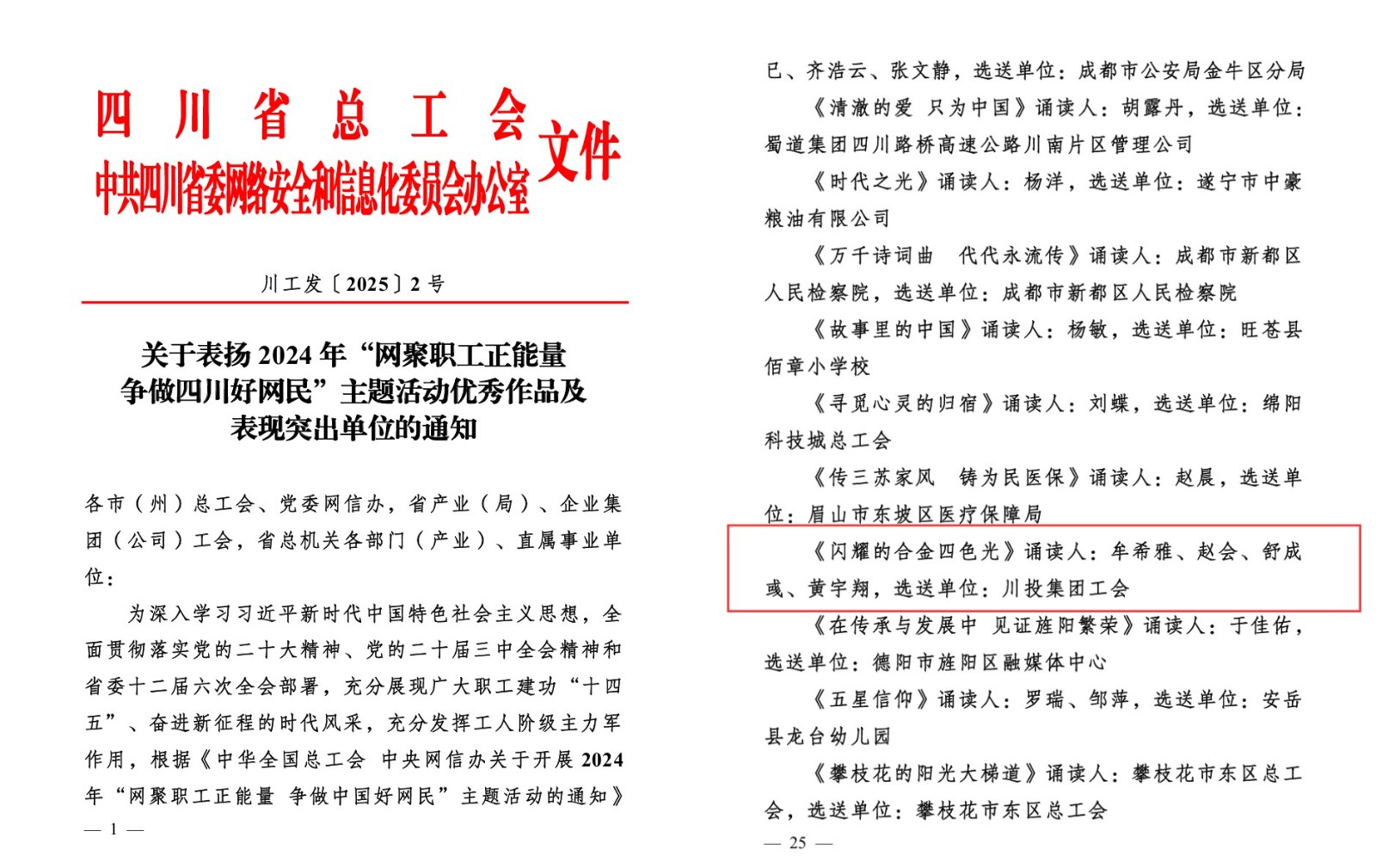 近日,由四川省总工会、四川省委网信办联合开展的“网聚职工正能量 争做四川好网民”2024年四川省网络正能量诵读作品征集活动评选结果揭晓,ok138cn太阳集团古天乐峨铁公司创作的诵读作品《闪耀的合金四色光》获评“2024年网络正能量优秀诵读作品”。