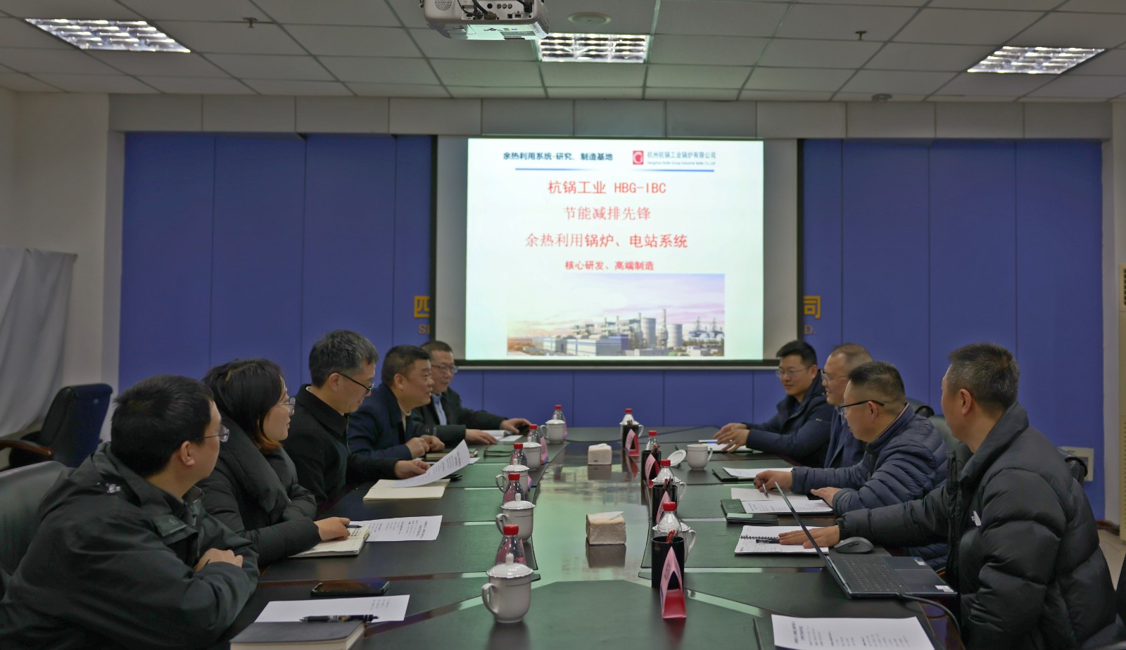 近日,杭锅工业锅炉有限公司总经理王峻一行4人到ok138cn太阳集团古天乐峨铁公司开展铁合金矿热炉尾气发电技术交流。