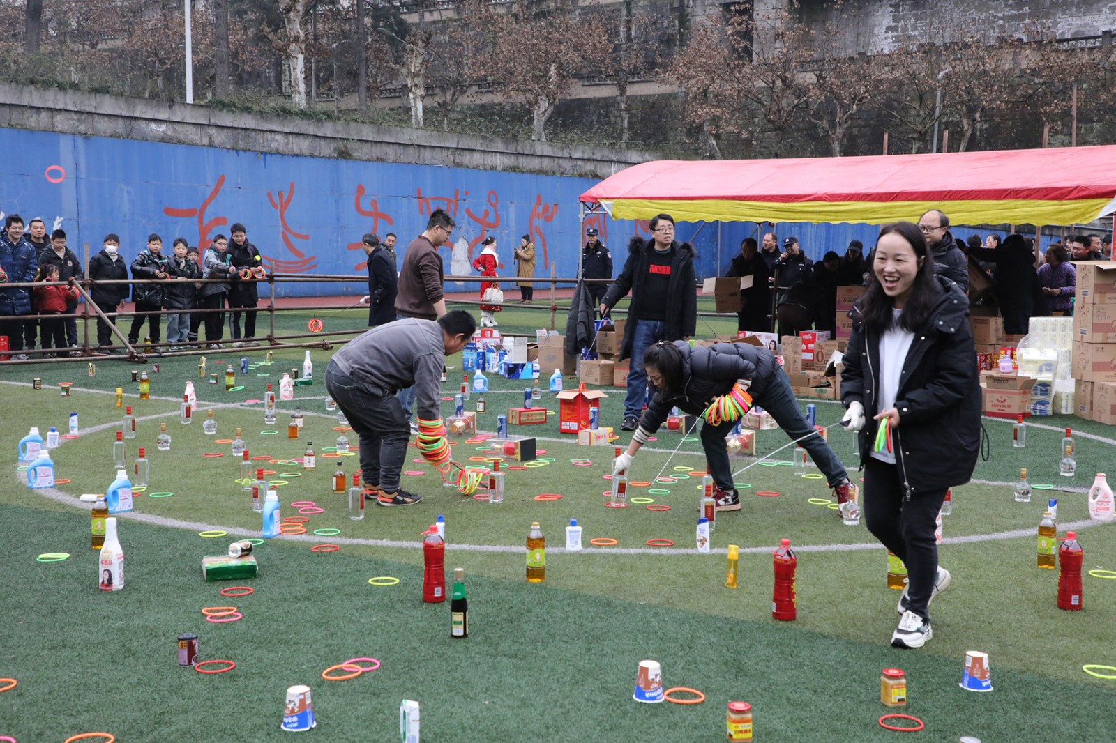 矿区足球场和芭沟老矿区分会场的实物套圈活动同样人气爆棚。“甩远点,套瓶好酒!”套圈场地被围得水泄不通。职工家属们手持套圈,神情专注,朝着心仪的奖品奋力投出。每当有人成功套中目标,周围便传来阵阵喝彩声,现场气氛热闹非凡。