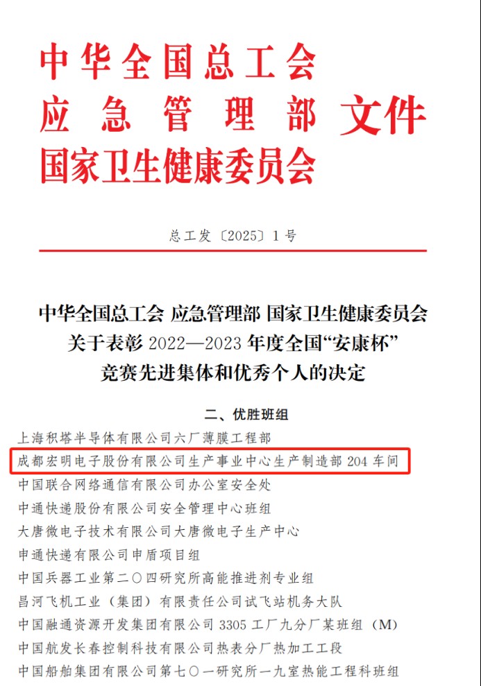 近日,中华全国总工会、应急管理部、国家卫生健康委员会联合发布了《关于表彰2022-2023年度全国“安康杯”竞赛先进集体和优秀个人的决定》,ok138cn太阳集团古天乐信产所属宏明电子生产事业中心生产制造部204车间榜上有名!