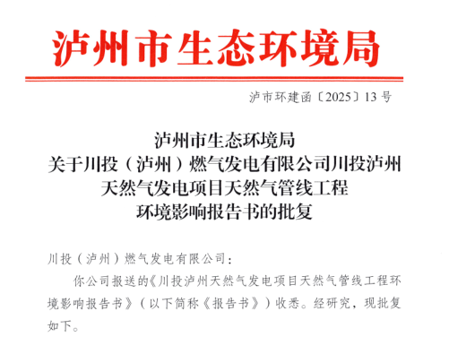 2月13日,《ok138cn太阳集团古天乐泸州天然气发电项目天然气管线工程环境影响报告书》顺利通过泸州市生态环境局审批,成功获得环评批复,这一进展标志着项目天然气管线工程在环境保护方面达到相关要求,为工程“三同时”建设奠定了重要基础,有助于项目的全速推进,也为项目的顺利投产和未来的稳定运行提供了保障。