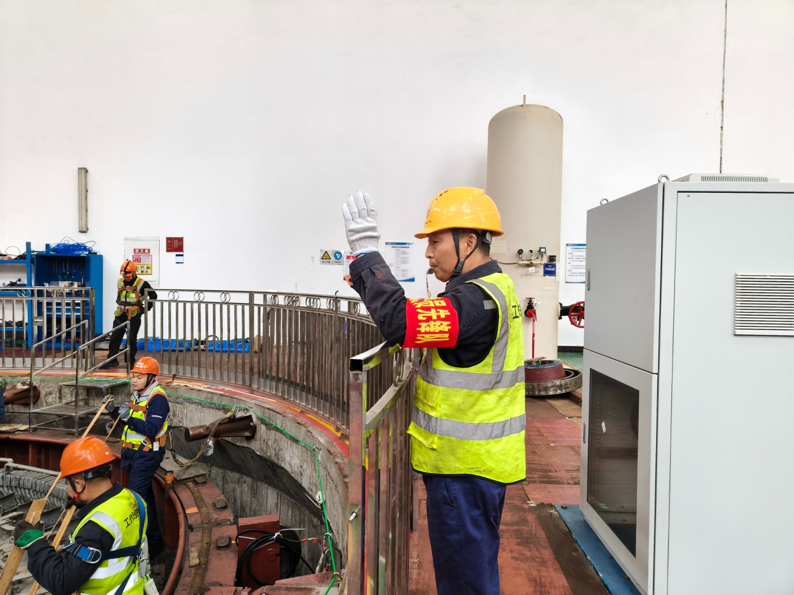 9时20分,转子吊装工作正式启动。“党员先锋队”“党员攻坚队”“青年服务队”三支攻坚引领团队按照各自分工,迅速投入到紧张工作中。他们身着整齐的工作服,佩戴着鲜艳的党徽,有的负责设备检查,确保吊装机械处于最佳状态;有的负责现场协调,保障各环节无缝对接;有的负责安全监督,时刻警惕任何潜在的安全隐患;还有的负责现场物资供应、医疗救护等工作。12时35分,随着一声哨响,#3机转子精准落入检修间指定位置。这一关键节点的圆满完成,不仅是对前期工作的肯定,更为后续机组检修工作注入了强大的信心和动力。下一步,高奉山党支部将继续探索党建工作与企业中心工作深度融合的新路径、新方法,不断推动“岗位红”特色能源小站建设,奋力冲刺全年安全生产目标任务。