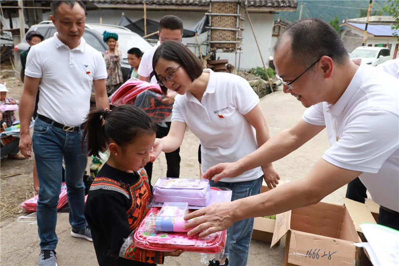 在洛俄依甘村,公司副总经理龚坚一行与驻村扶贫干部进行了交流,集体看望了当地的孤寡老人,为他们送去了米、油,为村上贫困家庭5——13岁40余名留守儿童,发放书包、文具袋、彩色铅笔、转笔刀等学习用品。随后,与小朋友们开展了丰富有趣的互动活动,帮每个小朋友系上漂亮的小书包,装好学习用具,勉励他们好好学习、天天向上。活动结束后,小朋友们集体唱起了彝族传统的《祝酒歌》挥手告别。