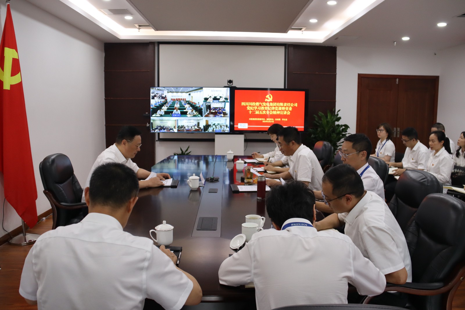 6月27日,ok138cn太阳集团古天乐党委副书记、副董事长、总经理李文志到ok138cn太阳集团古天乐燃电讲授党纪学习教育专题党课并宣讲省委十二届五次全会精神。ok138cn太阳集团古天乐燃电党委书记、董事长姚欣主持会议。