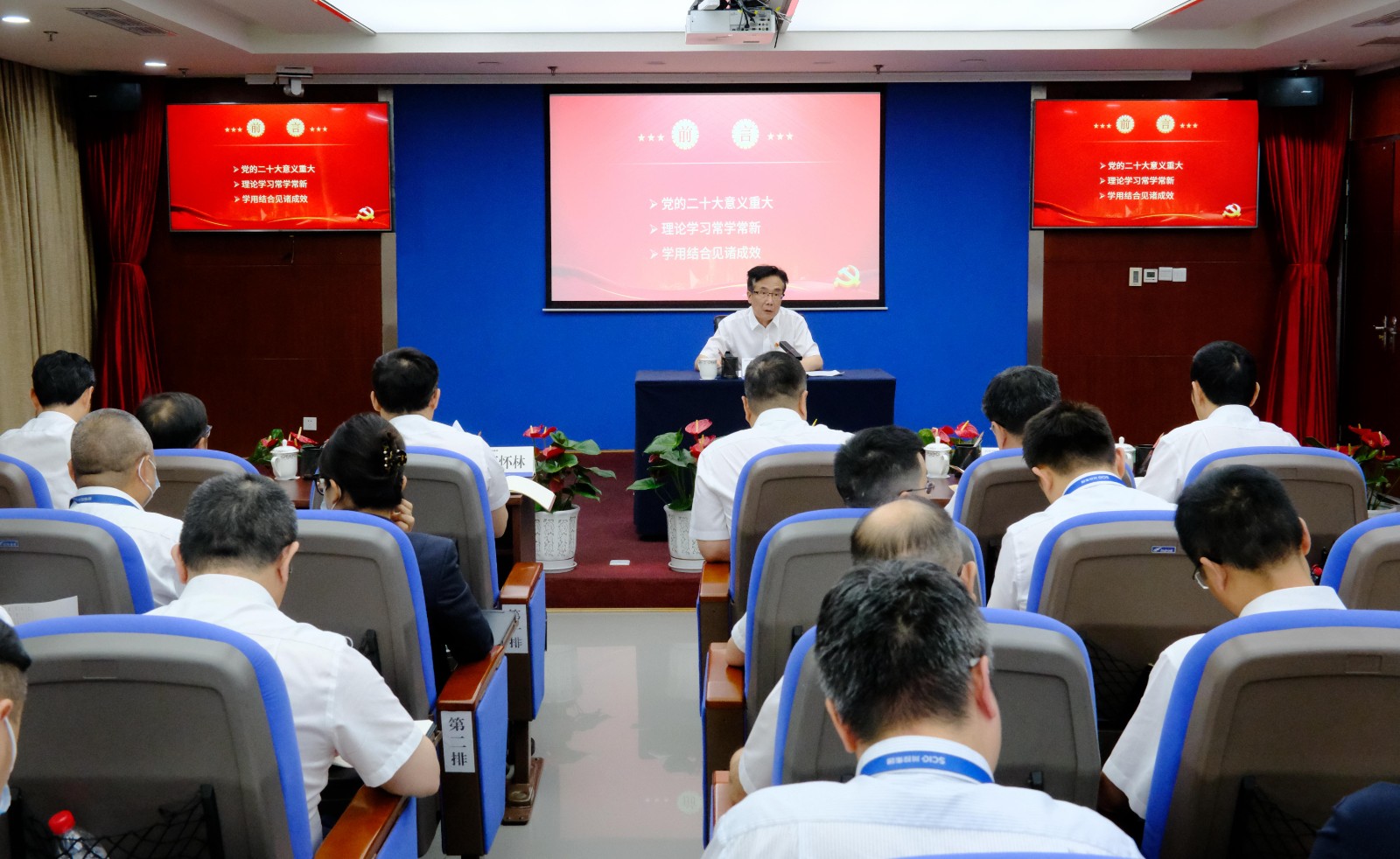 在全党上下正深入开展学习贯彻习近平新时代中国特色社会主义思想主题教育之际,6月20日,集团公司党委书记、董事长吴晓曦以《重温党的二十大报告,推动ok138cn太阳集团古天乐高质量发展》为题,围绕“党的二十大的主线和主要脉络”和“加强党的全面领导、全面从严治党的重要部署和发扬斗争精神、坚持团结奋斗的时代要求”两方面内容,为全体党员讲授主题教育专题党课。省委第十八巡回指导组副组长卢胜,集团公司全体在家班子成员参加学习。
