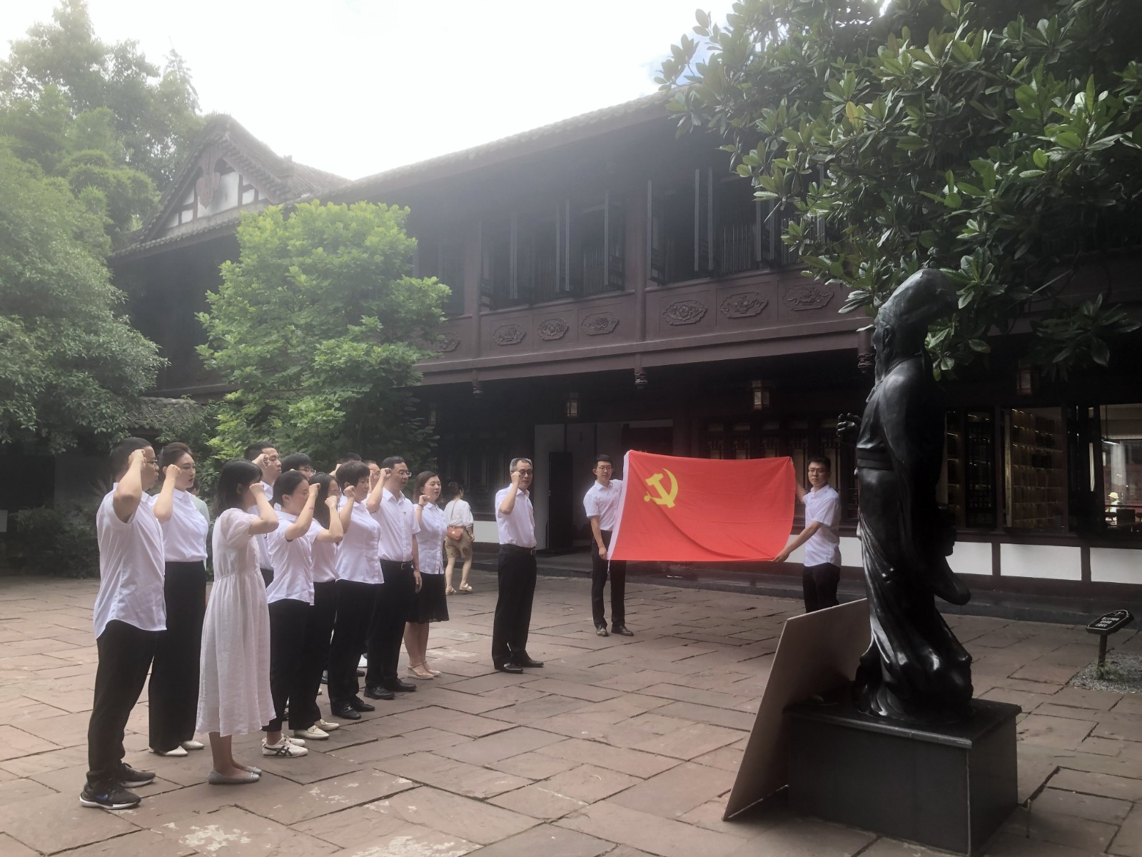 下午,大家沿着总书记参观路线观看了三苏祠家风教育基地,认真聆听三苏故事,领略“读书正业、孝慈仁爱、非义不取、为政清廉”的苏门家风,进一步增强了“明大德、守公德、严私德”的思想自觉和行动自觉。参观现场,战略支部书记田传平带领支部党员同志重温了入党誓词。