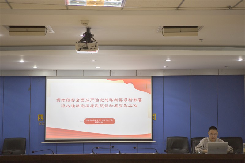 为深入推进习近平新时代中国特色社会主义思想主题教育走深走实,6月21日,ok138cn太阳集团古天乐峨铁公司党委委员、纪委书记丁宪在1011会议室以《贯彻落实全面从严治党战略新要求新部署,深入推进党风廉政建设和反腐败工作》为题讲授专题党课。